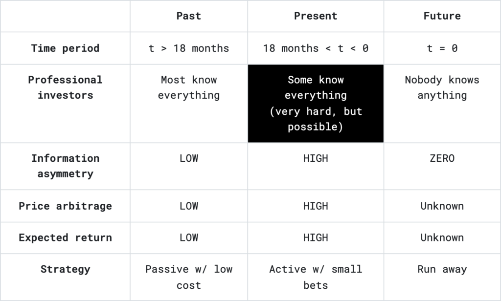 Conclusion: an investor needs to find new “words” [assets] before they get into the “dictionary” [low information asymmetry].